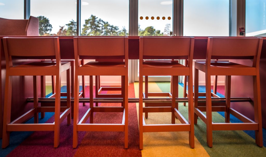 Mitt uppdrag innebar – med tydliga direktiv från kunden – ytterligare upphandling interiörer såsom gardiner, accessoarer, mattor, ytterligare armatur och foliering vägg entré samt material för ny logotyp 2017. Nedan följer några bilder. Fotograf: Jan C Ljunggren